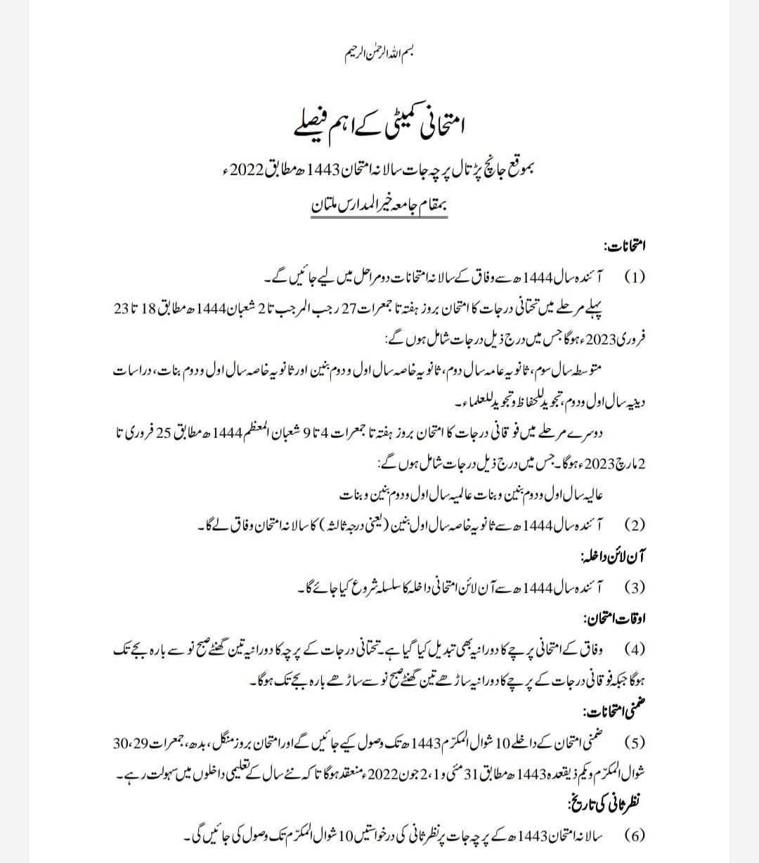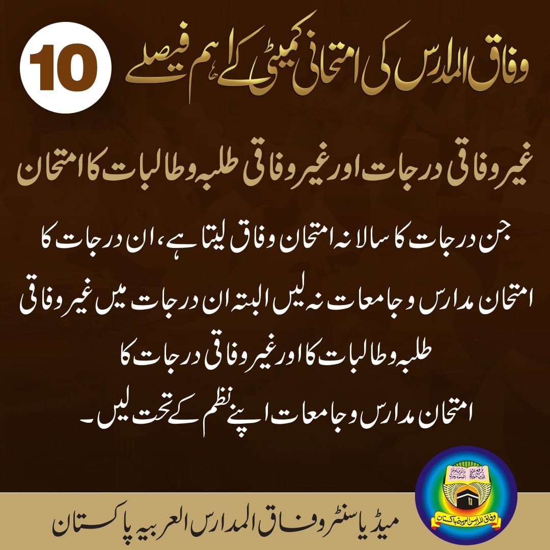 10. قدیم فاضلات کے امتحان کا سلسلہ 1444 سے ختم هوجائے گا