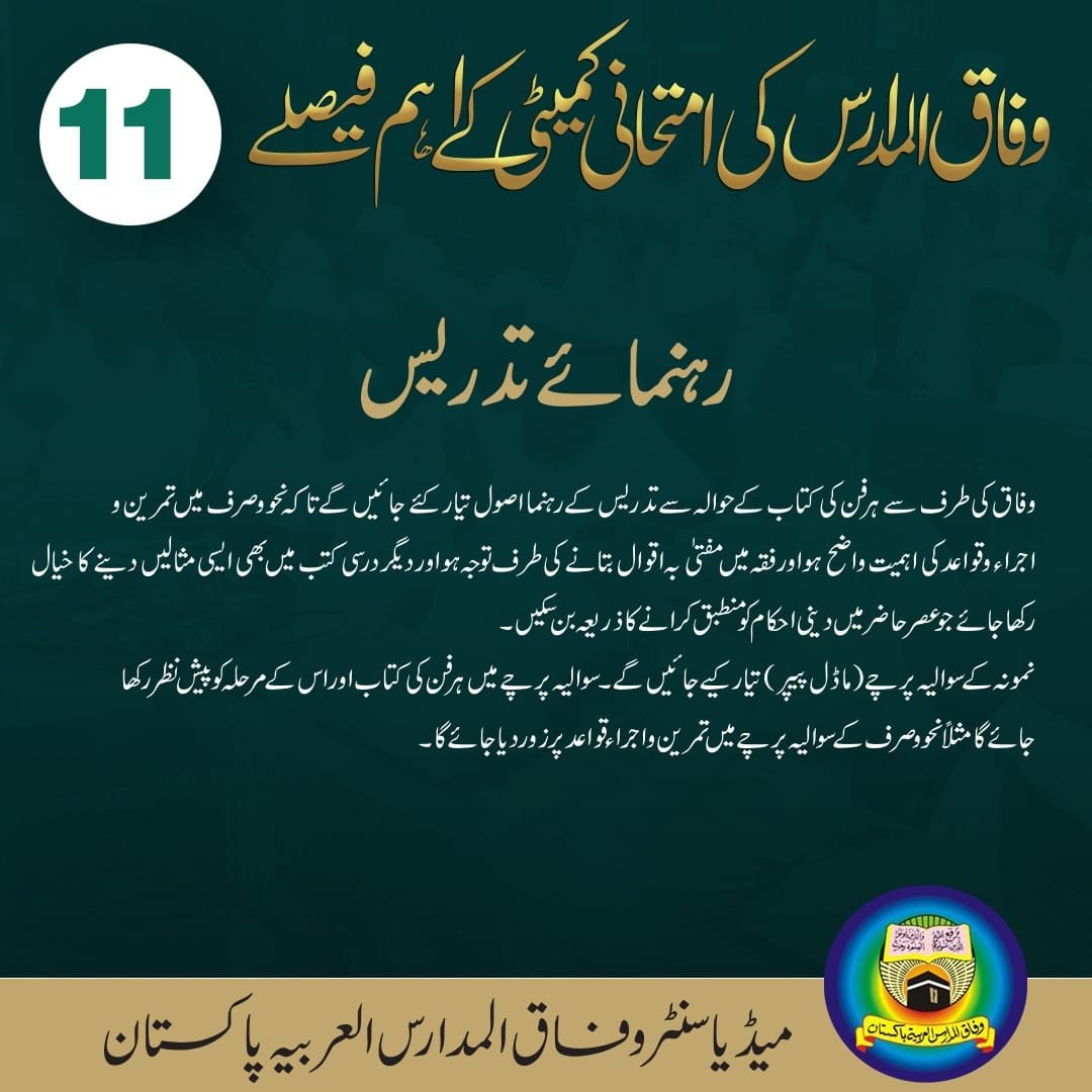 14. ہر فن کی ہر کتاب پڑھانے کے متعلق حضرت رہنما اصول بتائیں گے، ان کے مطابق تدریس کریں۔