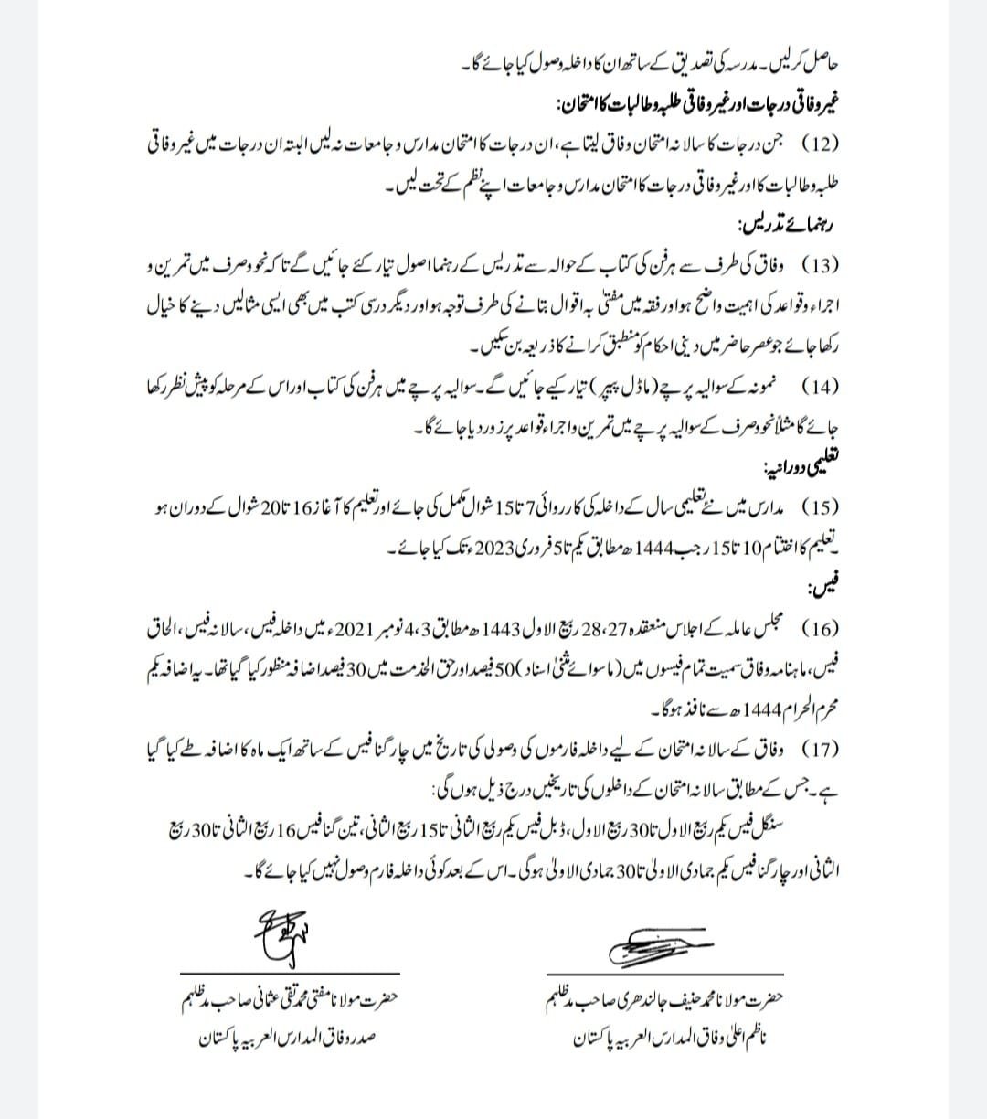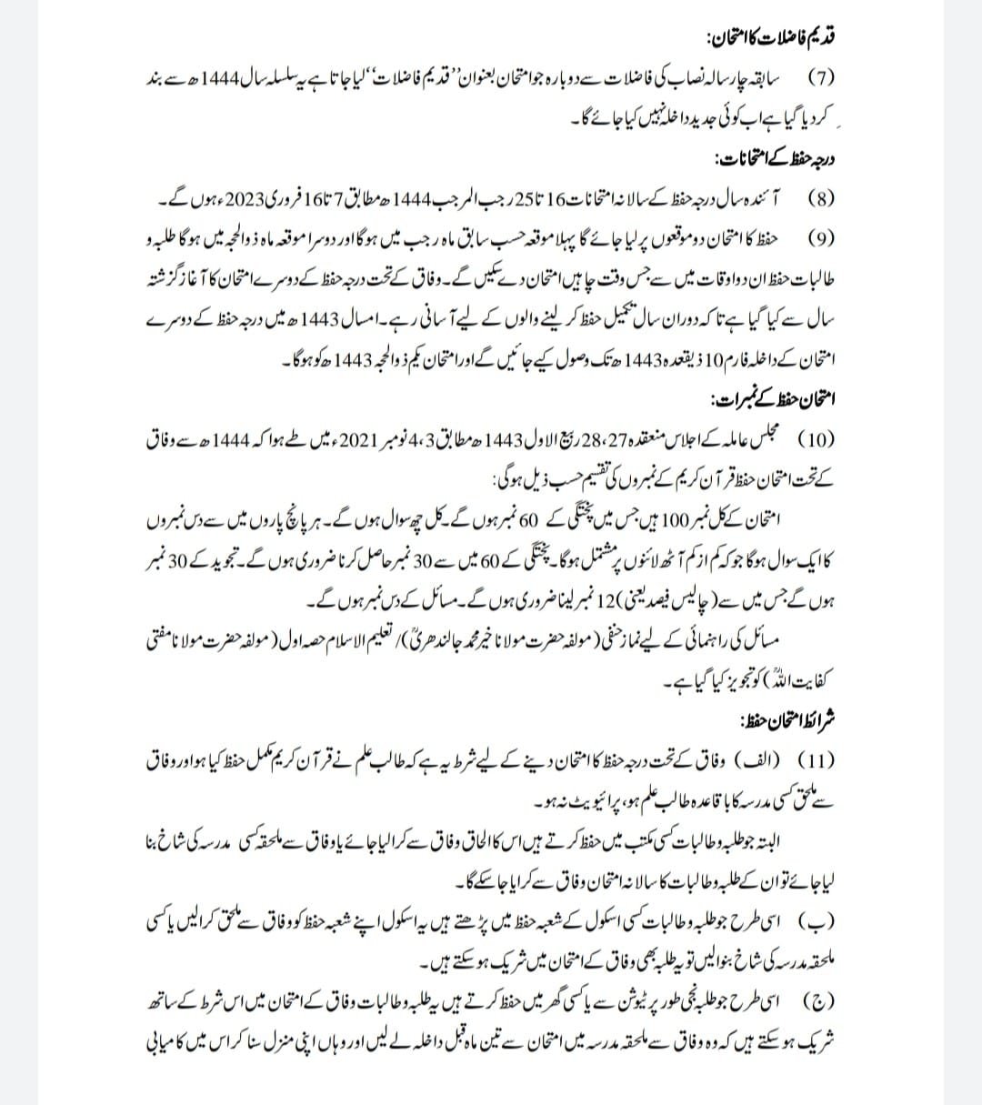 12. حفظ کا امتحان دو دفعہ ہوگا۔ دوسرا امتحان ذو الحجہ میں ہوگا